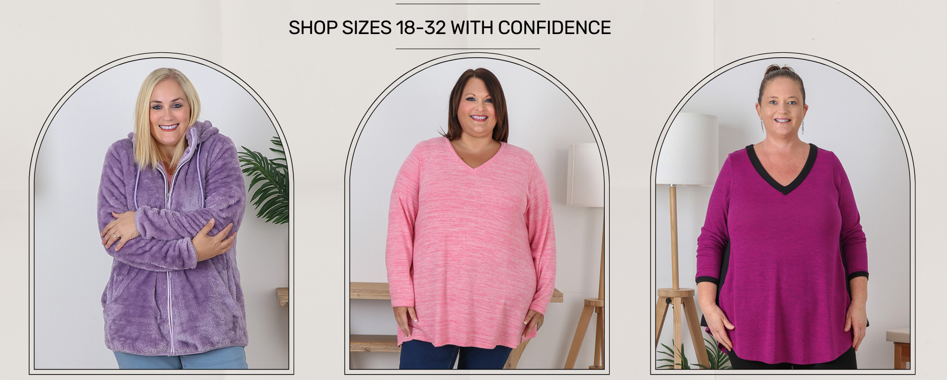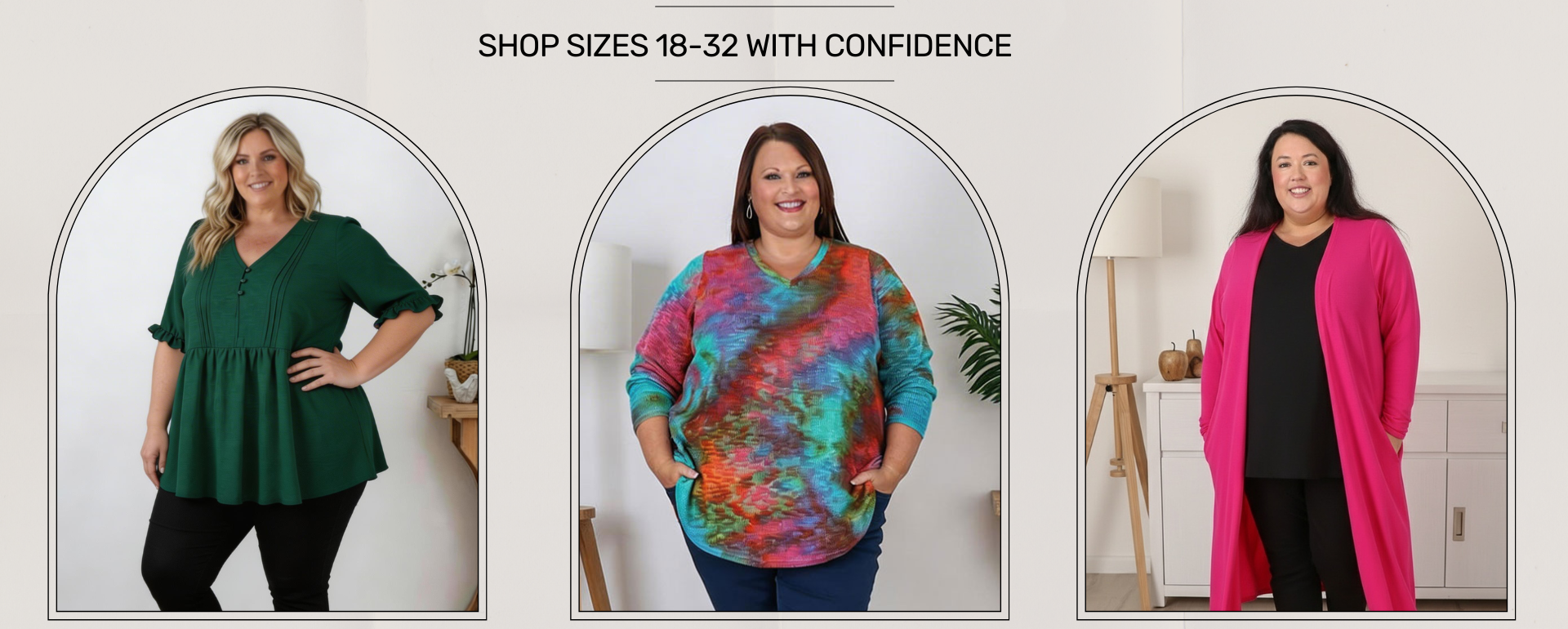 We provide plus size clothing in size 18, size 20, size 22, size24, size 26, size 28, size 30 & size 32