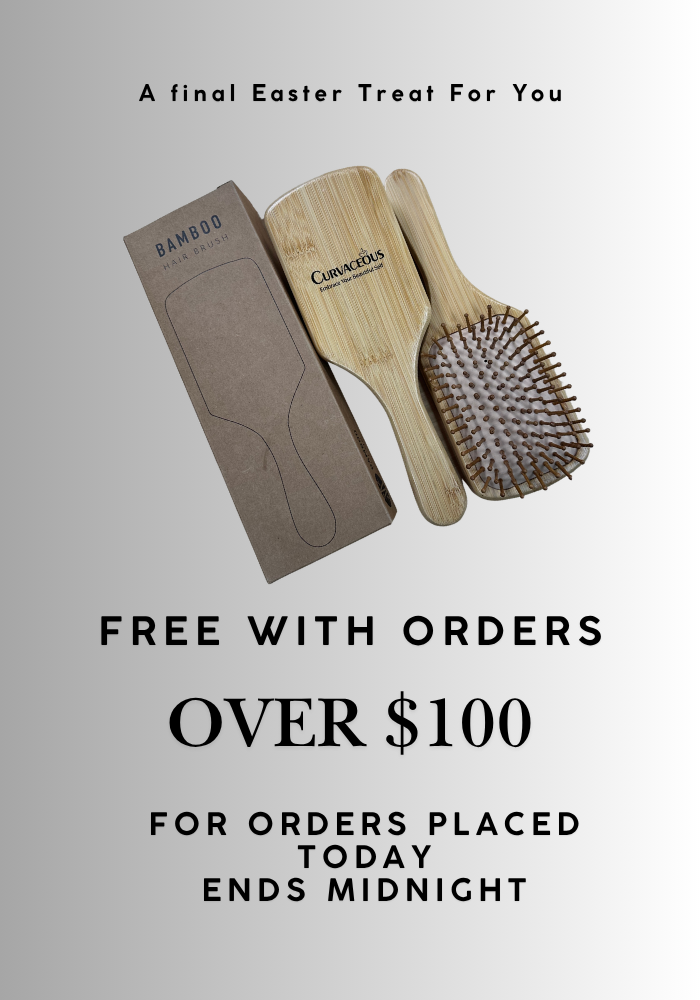 Promotion Starts 6-4-26, 9am NSW time - Spend $100 and receive a Curvaceous bamboo hairbrush. Promotion Ends midnight 6-4-26